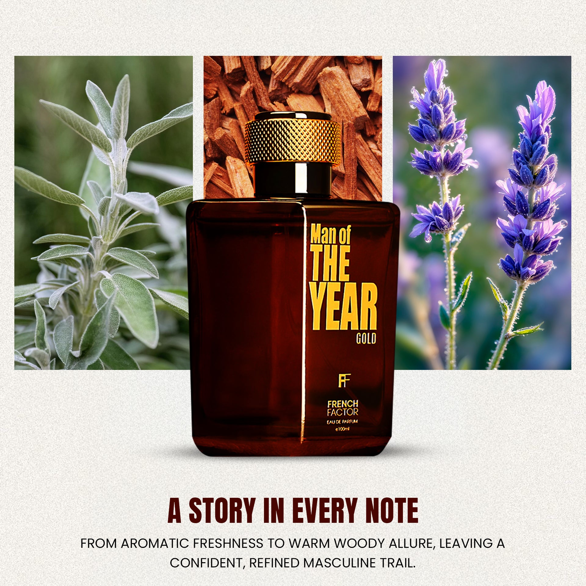 The aromatic freshness at the top symbolises clarity of intent. The warm, grounded heart reflects maturity and resilience. The rich base represents endurance, the ability to remain steady long after the moment passes.