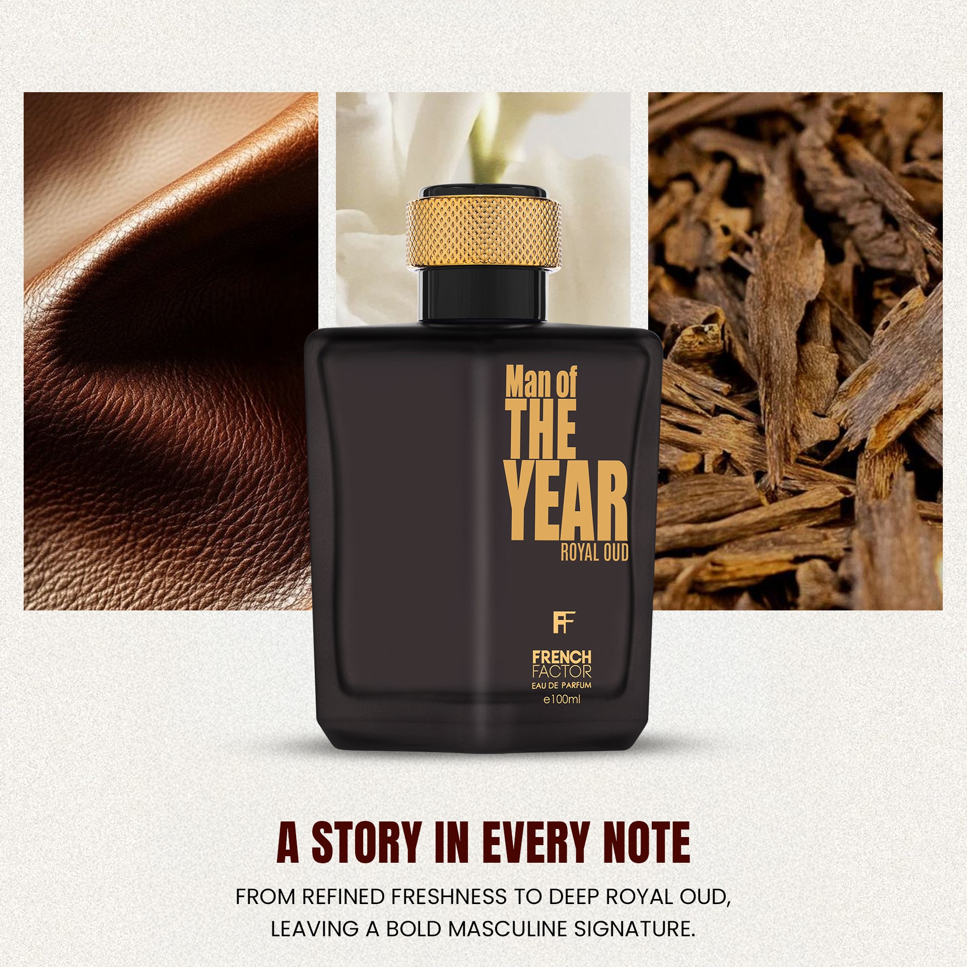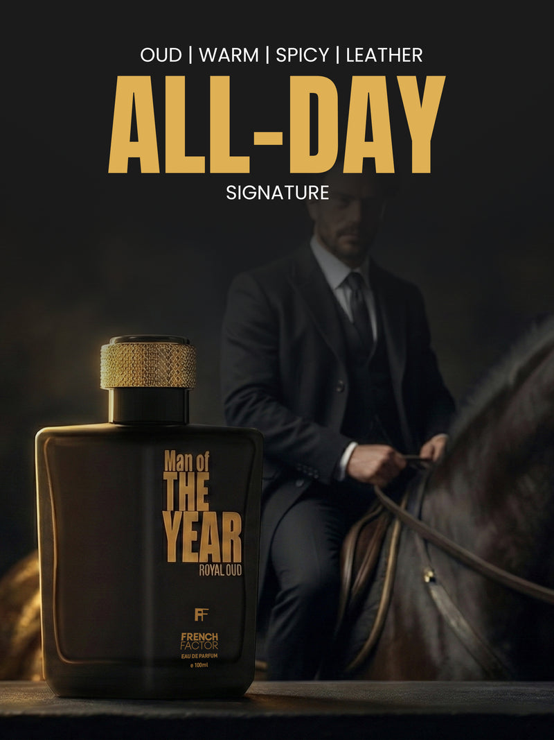 Man of the Year Royal Oud was created for the man who carries timeless charisma and modern confidence. The rich leather and deep oud evoke strength and heritage, while the subtle fruit and floral facets bring sophistication and balance.